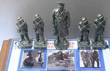 The game set is constructed of Colored steel and wood and the pieces shown. The top are graphices of the D-Day landing. Flip the top over and you have the playing surface. Each square of the playing surface has the image of a graphic of famous posters of both WWI and WWII. The pices are detailed pewter images of Rommel, Patton and infantrymen. Each piece measures just under 4 inches in height. The set is 8" X 8" Instead of playing the game with X and O you use the pewter images instead. General Romel and Patton and their Infantries $79.00Click here for Further Review and/or to Purchase |